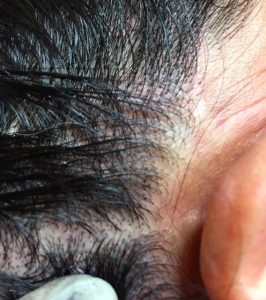 I was hired to strengthen a weak hairline for my client and It was then I discovered these scars, you could say I bumped into them. As excellent as he was, there were places, that should my beautiful client wear her hair up, it would be possible to see the thumbprint of his workmanship. I am still very impressed by this skilled Doctor/artist, but what I learned, is that in any surgery there will be scars.